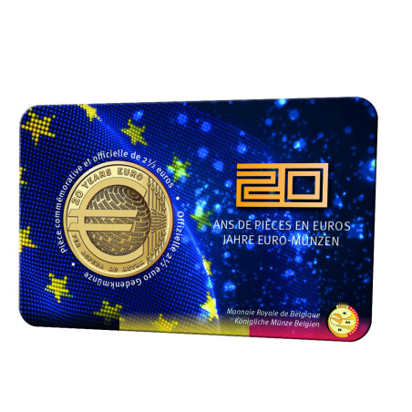 Depuis 2002, l'euro est la monnaie de 19 pays de l'UE comptant plus de 340 millions d'habitants et la deuxième monnaie la plus importante au monde. Les pièces et les billets en euros sont un rappel tangible et quotidien de la liberté, de la facilité de paiement et des nombreuses opportunités que nous offre l'Union européenne. Après 20 ans, nous avons presque oublié que nous payions en monnaie nationale et que nous devions courir à la banque à chaque fois que nous partions en vacances pour faire le plein de lires, de pesetas ou de drachmes. La pièce de 2,5 euros est frappée en qualité BU et est présentée dans un emballage comportant deux versions linguistiques. La carte de monnaie est d'inspiration euro-digitale. La pièce montre le symbole de l'euro sur un globe de chiffres binaires faisant référence au code binaire du symbole de l'euro, €. Elle est également entourée de la citation " PER ASPERA AD ASTRA " (par les difficultés jusqu'aux étoiles) du gouverneur honoraire Jan Smets, qui était le commissaire à l'euro responsable de l'introduction de l'euro en Belgique.