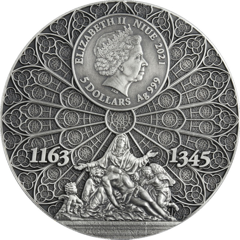 Son utilisation pionnière de la voûte d'ogives et de l'arc-boutant, ses rosaces énormes et colorées, ainsi que le naturalisme et l'abondance de sa décoration sculpturale la distinguent du style roman antérieur. Les principaux éléments musicaux qui distinguent Notre-Dame sont ses trois orgues à tuyaux, dont l'un est historique, et ses immenses cloches.