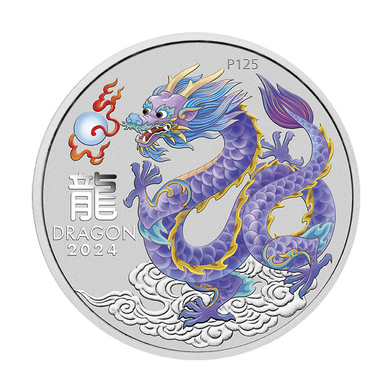 Le dragon inspire le plus grand respect dans la culture chinoise. Pendant des milliers d'années, il a été associé à l'empereur et à ses descendants, symbolisant la sagesse, l'illumination et la bienveillance. Le dragon est également l'un des douze animaux figurant dans l'ancien calendrier lunaire. Les personnes nées sous le signe du dragon lunaire en 2024, 2012, 2000, 1988, 1976 et toutes les 12 années précédentes sont réputées ambitieuses, prospères et charismatiques. Frappée par la Perth Mint à partir d'une once d'argent pur à 99,99 %, chaque pièce a cours légal en vertu de la loi australienne sur la monnaie de 1965. La Perth Mint ne mettra pas en circulation plus de 5 000 pièces de la Sydney Money Expo ANDA Special Australian Lunar Series III 2024 Year of the Dragon 1oz Silver Lilac Coloured Coin en carte dans un emballage individuel sur un tirage maximum de 200 000.