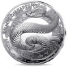 Au centre de l'avers de la pièce, un serpent ondule autour d'un anneau gravé de motifs traditionnels chinois. Le reptile est en mouvement, partiellement enroulé autour de l'anneau et comme prêt à s'échapper des bords de la pièce, qui sont ornés d'orchidées, la fleur associée à ce signe. Le sentiment de calme qui émane de la représentation du serpent renvoie directement à ce qui est l'une des principales caractéristiques des natifs de ce signe. L'idéogramme " Serpent " apparaît sur l'une des courbes de son corps. L'année 2025 et l'inscription signifiant " Année du serpent " apparaissent sur le contour du dessin. Le revers présente tous les animaux du zodiaque chinois. Ils sont tous représentés sur un écran entourant la porte d'un temple chinois traditionnel. Un cycle complet du zodiaque chinois sera composé de 2018 à 2029. Chacune de ces douze années présente donc un animal de ce calendrier. La valeur faciale est visible en haut à gauche et la mention "RF" figure sur la porte.