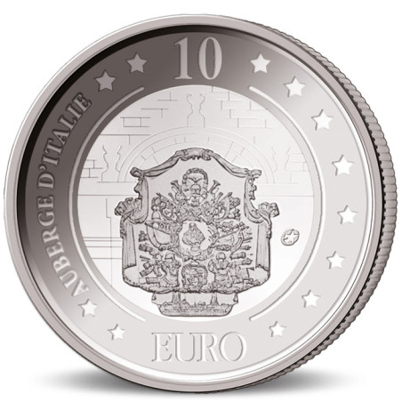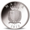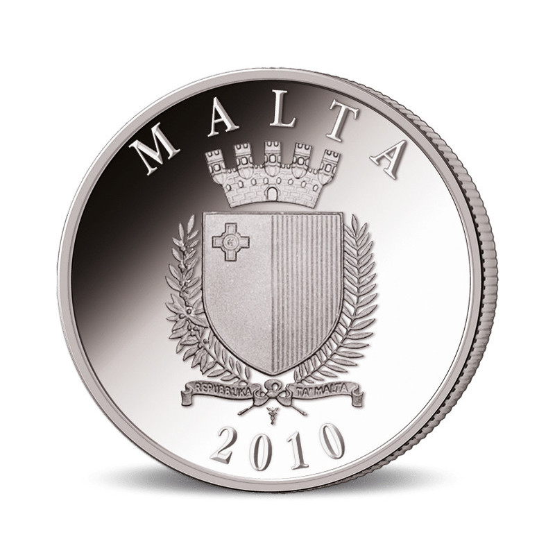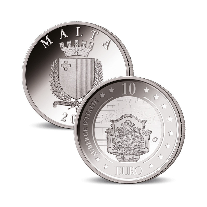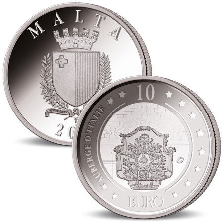 Cette pièce fait partie du programme maltais de pièces en euros, dont le thème est "le patrimoine culturel". La pièce de 2010 montre l'Auberge d'Italie sur le revers. Fondée par Girolamo Cassar en 1574, c'était le palais des "chevaliers de la langue italienne". Par la suite, le bâtiment a eu diverses fonctions, notamment celle de tribunal, de bureau de poste principal et de l'autorité touristique de Malte. Depuis 2018, il est utilisé comme le musée d'art communautaire national MUZA. Parce que le chef des chevaliers italiens doublait généralement le capitaine de la flotte, le grand hall, juste à l'intérieur de l'entrée, servait de lieu de réunion pour la "Congrégation des galères", quelque chose comme le commandement suprême de la flotte, qui avait les principaux capitaines parmi ses rangs. Les armoiries de Malte sont représentées sur la façade. Les armoiries de Malte sont une représentation héraldique du drapeau national de Malte.