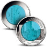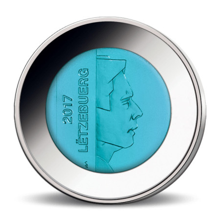 La pièce représente l'un des célèbres châteaux du Luxembourg : Château d'Useldange. Cette ruine séculaire se trouve au milieu de la ville du même nom et est classée comme site patrimonial protégé depuis des décennies. Ainsi, les vestiges du château sont particulièrement bien conservés et une multitude d'informations historiques sont fournies. Le cœur de cette monnaie luxembourgeoise spéciale est constitué de niobium pur (99,9%). Lorsque le niobium est traité d'une certaine manière, il acquiert un éclat bleu typique.