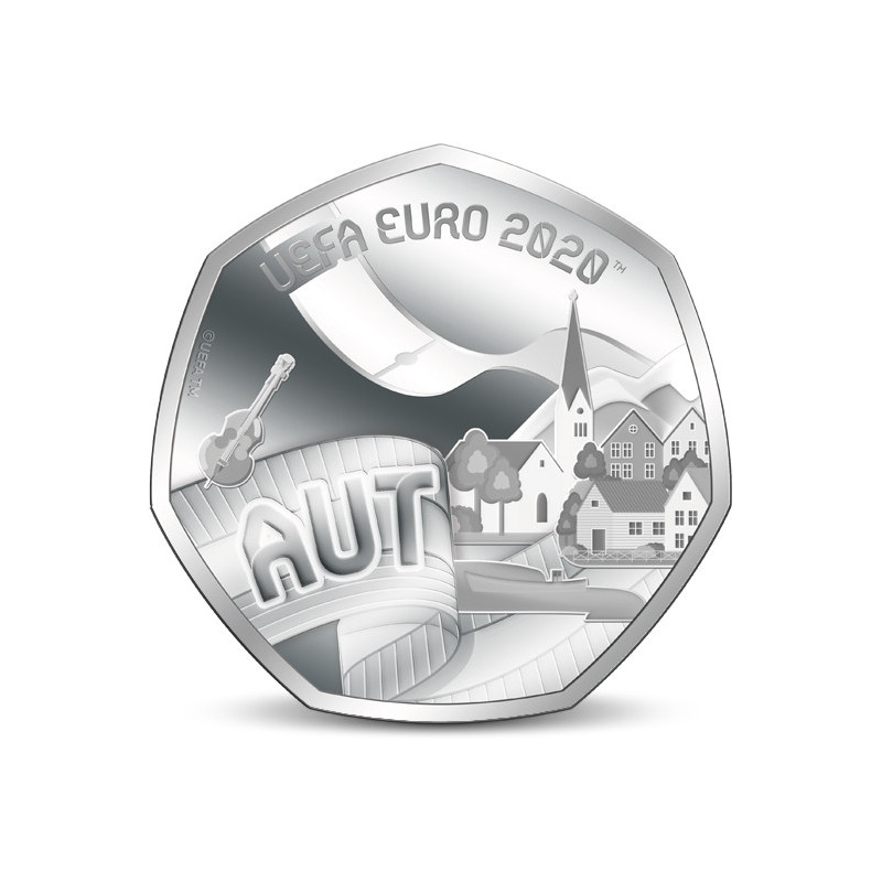 Voici l'une des pièces commémoratives officielles de 20 pence frappées en l'honneur du championnat d'Europe 2020. Une pièce commémorative officielle a été produite pour chaque pays participant au championnat. Chacune de ces pièces uniques du Championnat d'Europe est fortement plaquée d'argent pur (99,99 %). Les pièces, portant l'inscription UEFA EURO 2020™, ont été frappées avant que le championnat d'Europe ne soit contraint d'être reporté à 2021. Cela rend les pièces hautement désirables parmi les fans de football et les collectionneurs du monde entier.