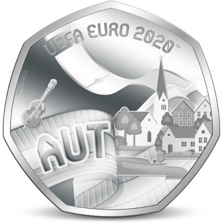Voici l'une des pièces commémoratives officielles de 20 pence frappées en l'honneur du championnat d'Europe 2020. Une pièce commémorative officielle a été produite pour chaque pays participant au championnat. Chacune de ces pièces uniques du Championnat d'Europe est fortement plaquée d'argent pur (99,99 %). Les pièces, portant l'inscription UEFA EURO 2020™, ont été frappées avant que le championnat d'Europe ne soit contraint d'être reporté à 2021. Cela rend les pièces hautement désirables parmi les fans de football et les collectionneurs du monde entier.