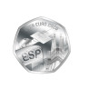 Cette pièce présente un drapeau espagnol flottant et l'abréviation ESP. On y voit également la Sagrada familia et un taureau.