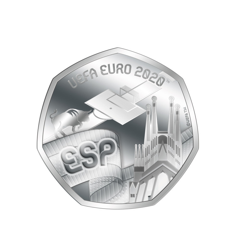 Voici l'une des pièces commémoratives officielles de 20 pence frappées en l'honneur du championnat d'Europe 2020. Une pièce commémorative officielle a été produite pour chaque pays participant au championnat. Chacune de ces pièces uniques du Championnat d'Europe est fortement plaquée d'argent pur (99,99 %). Les pièces, portant l'inscription UEFA EURO 2020™, ont été frappées avant que le championnat d'Europe ne soit contraint d'être reporté à 2021. Cela rend les pièces hautement désirables parmi les fans de football et les collectionneurs du monde entier.