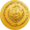 Cette petite pièce en or représente un Aureus avec la tête laurée de l'empereur Auguste (63 av. J.-C. - 14 ap. J.-C.). L'avers porte les armoiries des Palaos et la valeur nominale " 1 $ " (USD).