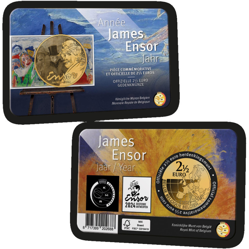 De The Oyster Eater à The Intrige : plus l'œuvre est célèbre et désirable/valorisable, plus le NFT est rare. Les œuvres d'Ensor prennent vie avec un « glitch » ou un frisson ! NFT : signifie Non-Fungible Token (jeton non fongible). Un NFT est un certificat numérique de propriété, stocké sur une blockchain, qui fait référence à un objet médiatique numérique. Des QR codes ont été ajoutés à 2 x cartes de 5 000 pièces 2 ½ euro James Ensor Année 2024 avec lesquels un NFT peut être réclamé. Les pièces sont donc accompagnées d'un supplément exclusif ! Vous recevrez la carte de pièce dans un dossier spécial avec des explications étape par étape.