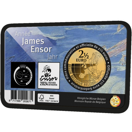 De The Oyster Eater à The Intrige : plus l'œuvre est célèbre et désirable/valorisable, plus le NFT est rare. Les œuvres d'Ensor prennent vie avec un « glitch » ou un frisson ! NFT : signifie Non-Fungible Token (jeton non fongible). Un NFT est un certificat numérique de propriété, stocké sur une blockchain, qui fait référence à un objet médiatique numérique. Des QR codes ont été ajoutés à 2 x cartes de 5 000 pièces 2 ½ euro James Ensor Année 2024 avec lesquels un NFT peut être réclamé. Les pièces sont donc accompagnées d'un supplément exclusif ! Vous recevrez la carte de pièce dans un dossier spécial avec des explications étape par étape.