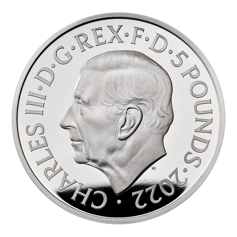 Le revers de la pièce présente deux portraits de la reine, décédée en 2022, réalisés par John Bergdahl : l'un dans sa jeunesse et l'autre plus tard dans sa vie. Le chiffre familier " EIIR " apparaît entre les effigies, au milieu d'ornements décoratifs. Les mots " ELIZABETH REGINA " apparaissent au-dessus et les dates de son règne " 1926-2022 " en dessous. L'avers de la pièce présente le premier portrait officiel du nouveau roi, dessiné par Martin Jennings et personnellement approuvé par le monarque. Le roi regarde vers la droite, dans la direction opposée à celle de la défunte reine Elizabeth II.