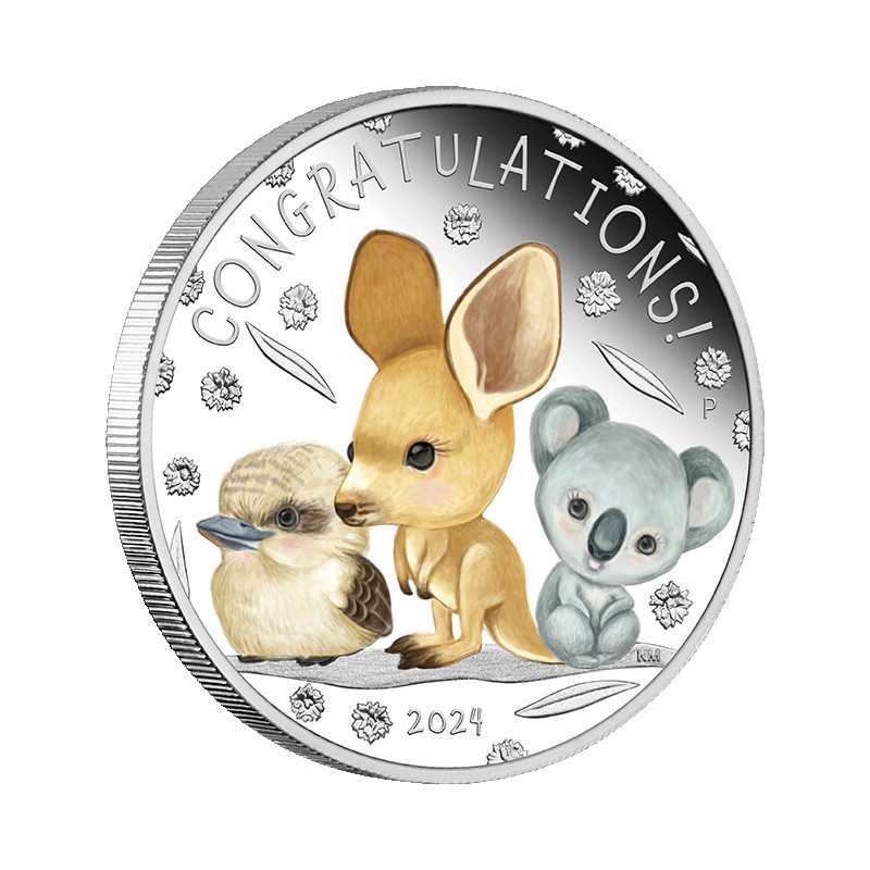 Un souvenir à garder précieusement toute sa vie, cette pièce d'argent colorée de 1/2oz est une façon unique et attentionnée de célébrer la venue d'un nouvel arrivant en 2024. l'arrivée d'un nouveau venu en 2024.