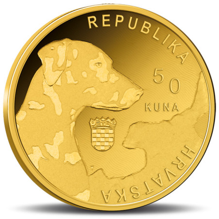 Vous vous demandez peut-être pourquoi un dalmatien est représenté sur cette Kuna en or ? C'est parce que des recherches ont montré que le chien dalmatien est originaire de ce qui est aujourd'hui la Croatie. En effet, cette race de chien apparaît dans des documents et des dessins datant du XVIe siècle.