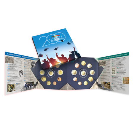 Le set contient les 8 pièces belges de 2017 en qualité BU, ainsi que les 2 pièces commémoratives de 2 euros pour le bicentenaire des Universités de Gand et de Liège. Les trois pièces de 2 euros sont alignées dans le set, avec au centre la pièce de 2 euros à l'effigie du roi Philippe.