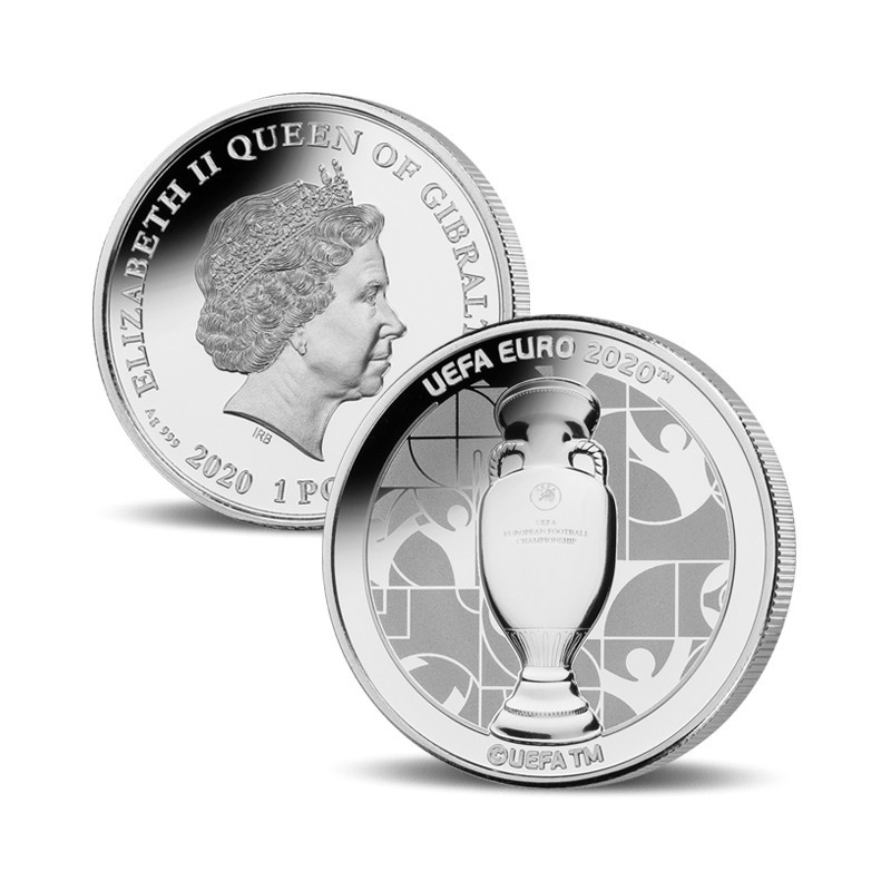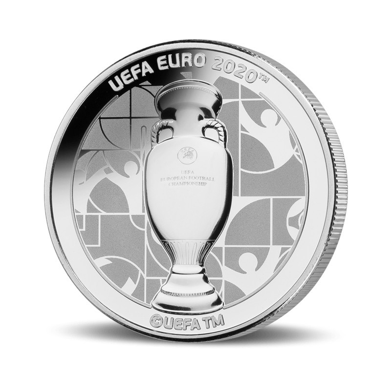 Il s'agit de l'une des pièces officielles en argent de qualité épreuve frappées en l'honneur d'un championnat d'Europe 2020. Cette pièce représente le trophée du championnat d'Europe. Ces pièces d'argent uniques, portant l'inscription UEFA EURO 2020™, ont été frappées avant que le championnat d'Europe ne soit contraint d'être déplacé en 2021. Cela rend les pièces très recherchées par les fans de football et les collectionneurs du monde entier.