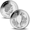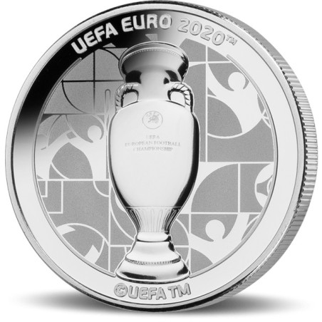 Il s'agit de l'une des pièces officielles en argent de qualité épreuve frappées en l'honneur d'un championnat d'Europe 2020. Cette pièce représente le trophée du championnat d'Europe. Ces pièces d'argent uniques, portant l'inscription UEFA EURO 2020™, ont été frappées avant que le championnat d'Europe ne soit contraint d'être déplacé en 2021. Cela rend les pièces très recherchées par les fans de football et les collectionneurs du monde entier.