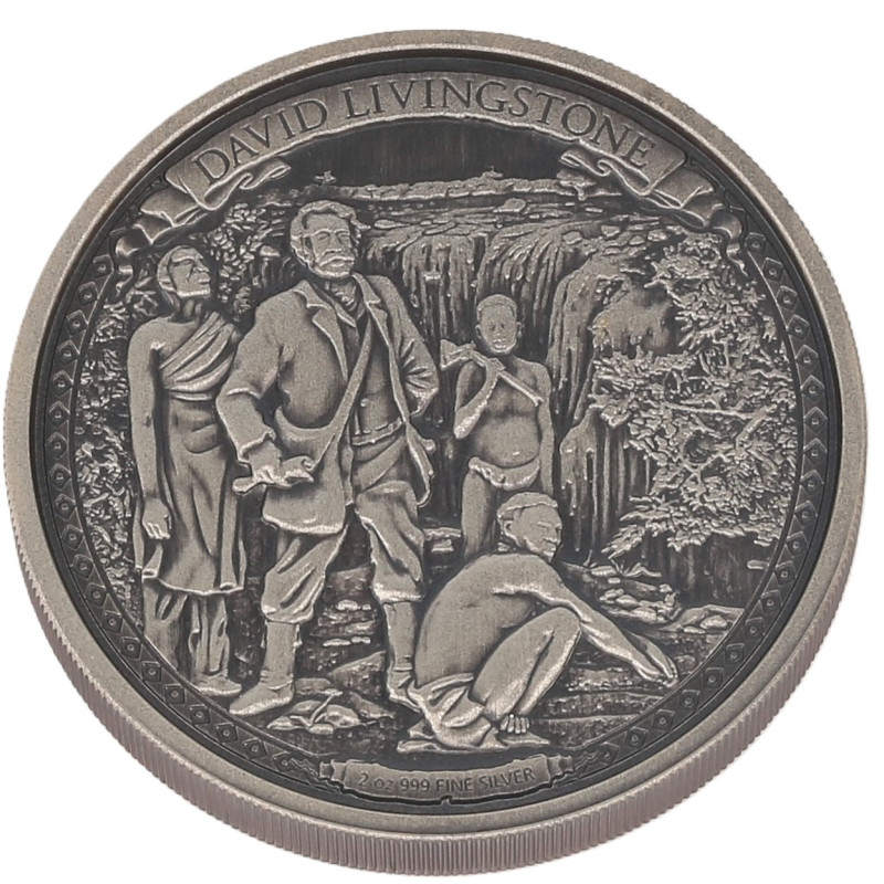 David Livingstone était un missionnaire et un explorateur légendaire du continent africain, qui allait devenir l'un des héros nationaux les plus populaires de Grande-Bretagne à la fin du XIXe siècle. l'un des héros nationaux les plus populaires de Grande-Bretagne à la fin du 19e siècle. Cette pièce gravée en relief, au fini antique Cette pièce gravée en relief, au fini antique, montre une interprétation d'artiste de David Livingstone, debout avec son entourage d'explorateurs, devant l'épine dorsale de l'Angleterre. devant les chutes Victoria, d'une beauté à couper le souffle.