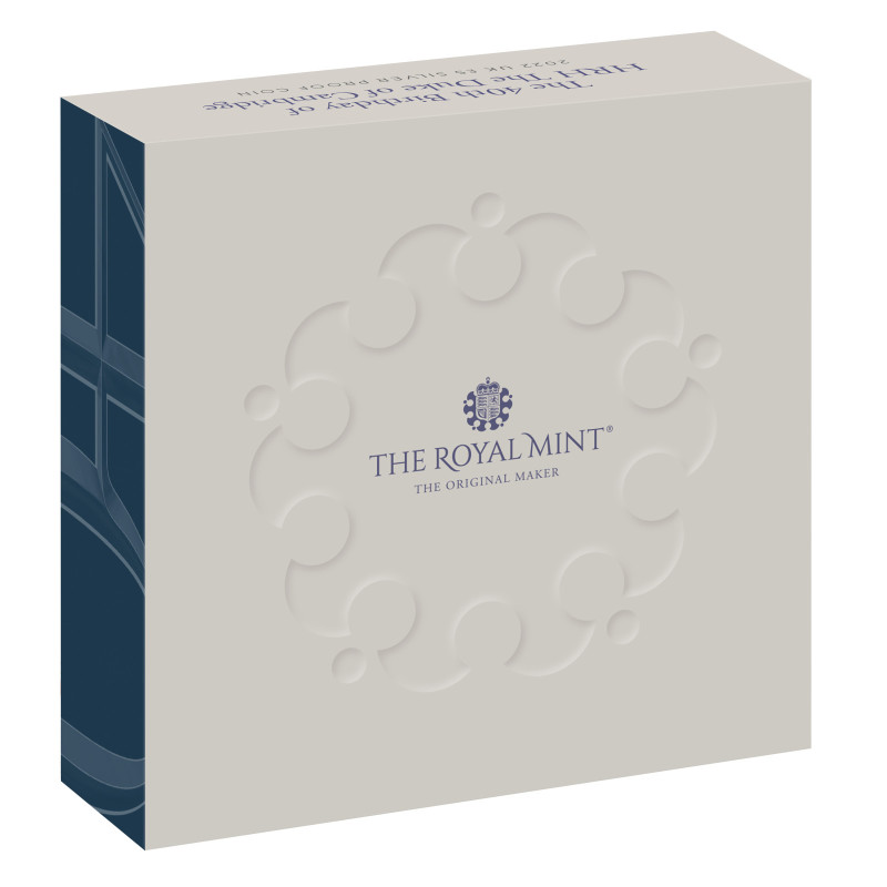 Deze speciale zilveren munt van 5 pond, in proof-kwaliteit, is geslagen ter ere van de 40e verjaardag van prins William. Het is de eerste munt waarop alleen Prins William op de achterkant staat afgebeeld. De munt weegt 28 gram en is geslagen in eersteklas Sterling (.925) zilver. Munten waarop voor het eerst een koninklijke vorst staat afgebeeld zijn uiterst zeldzaam en slechts eens in de generatie verkrijgbaar, dus mis je kans niet om er een in handen te krijgen. Op de achterkant zien we een portret van prins William met 40 op de achtergrond aan de linkerkant en een sierlijke hoofdletter W onder een kroon aan de rechterkant. Opgegroeid tijdens het millenniumtijdperk van de jaren 1980 en 1990. Zijne Koninklijke Hoogheid The Duke of Cambridge heeft zich ontwikkeld van een populaire jonge prins tot een hooggeplaatst lid van de koninklijke familie. Hij is ook een toegewijde echtgenoot van Hare Koninklijke Hoogheid de Hertogin van Cambridge en een liefhebbende vader voor hun drie jonge kinderen. Zijne Koninklijke Hoogheid staat goed aangeschreven bij zijn collega's en het Britse publiek en probeert invloed uit te oefenen op zaken die hem na aan het hart liggen, zoals de bescherming van het milieu en het doorbreken van het stigma dat kleeft aan geestelijke gezondheidsproblemen.