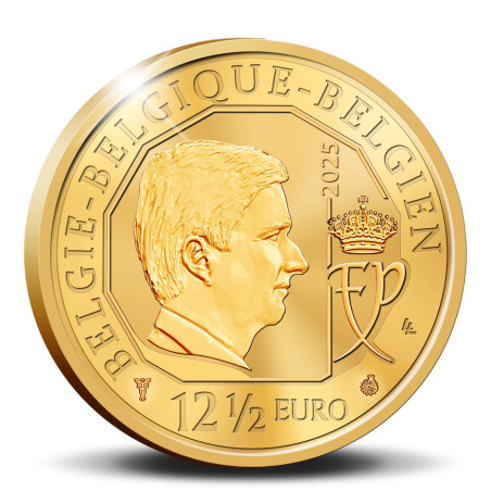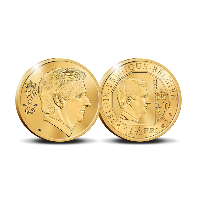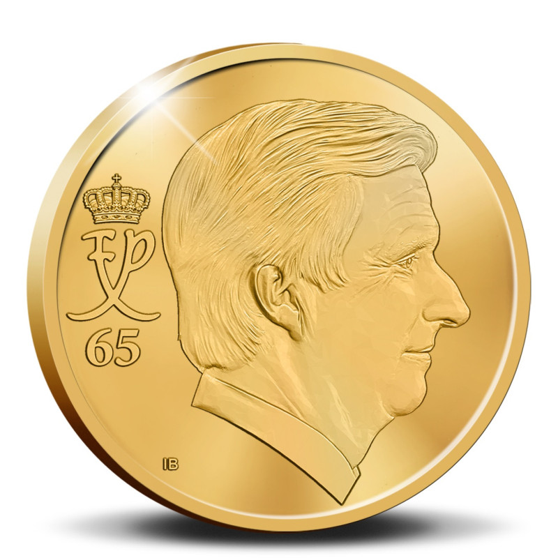 Op 15 april 2025 viert Koning Filip zijn 65e verjaardag. De Belgische monarch zag het levenslicht voor het eerst op 15 april 1960 als oudste zoon van Koning Albert II en Koningin Paola. Zijn geboorte, destijds een belangrijk moment voor het koninkrijk, markeerde het begin van een leven dat later onlosmakelijk verbonden zou zijn met de toekomst van België. Sinds zijn troonsbestijging in 2013, als zevende Koning der Belgen, presenteert Koning Filip zich als een bescheiden en daadkrachtig vorst, die altijd dicht bij het volk blijft. In zijn 65 jaar nam hij niet alleen zijn koninklijke rol op zich, maar toonde hij zich ook een man van familie, cultuur en wetenschap. Zijn toewijding aan het koninkrijk en zijn familie was een rode draad in zijn leven. Om de vijfenzestigste verjaardag van Koning Filip extra luister bij te zetten, geeft België nu een prachtige munt van 12½ euro uit, geslagen in het zuiverste goud en van de allerhoogste proof kwaliteit. De voorzijde toont het portret van de jubilerende vorst, het getal '65' links, met daarboven zijn persoonlijke monogram. Iris Bruijns tekende het ontwerp. De achterkant toont het portret van koning Filip, de nominale waarde en de drietalige landenaanduiding. Een luxe etui en een genummerd Certificaat van Echtheid maken dit subtiele numismatische juweeltje compleet.