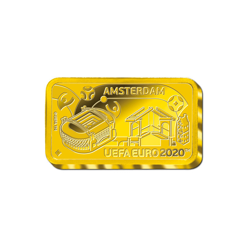 Dit is een van de officiële Goudbaar Munten die ter ere van een EK 2020 zijn geslagen. Deze unieke munten van 24 karaat goud, met de opschrift UEFA EURO 2020™, zijn geslagen voordat het EK noodgedwongen naar 2021 werd verplaatst. Dit maakt de munten zeer gewild onder zowel voetbalfans als verzamelaars wereldwijd.