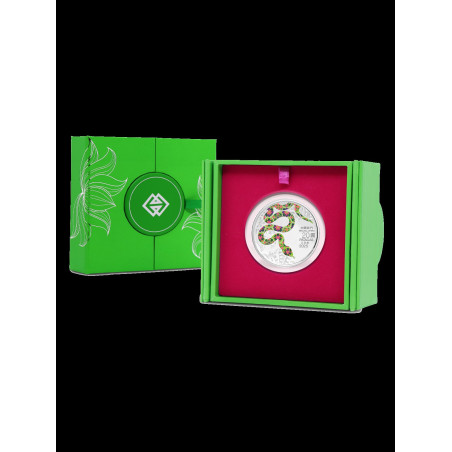 De Monetaire Autoriteit van Macau presenteert met trots de Macau Jaar van de Slang munten, exclusief geslagen door The Singapore Mint. De Macau Jaar van de Slang munten zijn de 6e emissie van de Macau Lunar Coin Series 2020-2031 die de kenmerken van Macau's World Heritage Sites laat zien en de unieke mix van Macau's Chinese en Portugese cultuur laat zien door middel van smaakvolle ontwerpelementen en innovatief vakmanschap. Op de voorzijde van de munt is de sierlijke glibberige slang afgebeeld met glanzende smaragdgroene tegels met een Portugees patroon. Op de achtergrond zijn lotussen afgebeeld, de stadsbloem van Macau, wat het ontwerp van de munt nog ingewikkelder maakt. De begeleidende teksten zijn ook zorgvuldig gerangschikt zodat ze lijken op de kaart van het schiereiland Macau. Op de achterkant van de munt is het Lilau-plein afgebeeld, dat op ingewikkelde wijze is geslagen met een hoog-reliëf munttechniek. In het verleden was het grondwater van Lilau de belangrijkste bron van natuurlijk bronwater in Macau. Lilau Square was ook een van de vroegste Portugese woonwijken in Macau. Dit gebied is gebouwd langs de glooiende berghelling en omvat Portugese architectuur langs de Lilau Alley. Het ontwerp van de munt, gepresenteerd vanuit een bottom-up perspectief, heeft de Lilau fontein als belangrijkste element, samen met een vintage straatlantaarn. De appartementen met louvre-ramen en rode dakpannen stralen een duidelijke Europese charme uit.