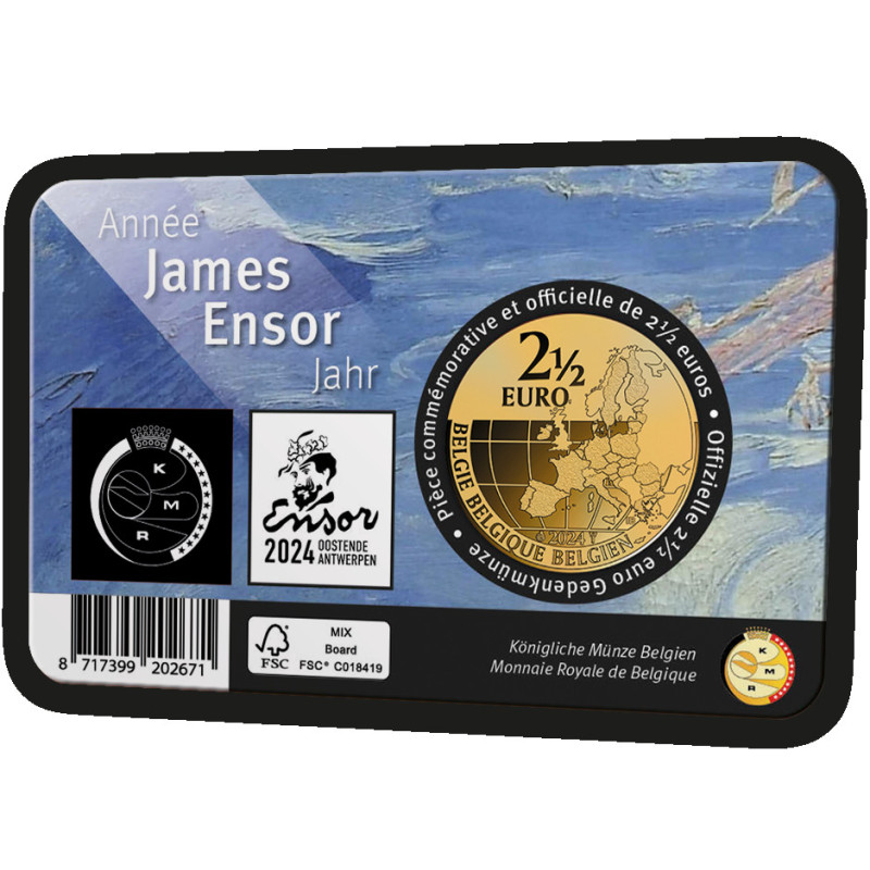 Van The Oyster Eater tot The Intrige: hoe bekender en begeerlijker/waardevoller het werk, hoe zeldzamer de NFT. Ensors werken komen tot leven met een 'glitch' of huivering! NFT: staat voor Non-Fungible Token. Een NFT is een digitaal certificaat van eigendom, opgeslagen op een blockchain, dat verwijst naar een digitaal mediaobject. Aan 2 x 5.000 muntkaarten 2 ½ euro James Ensor Year 2024 zijn QR-codes toegevoegd waarmee een NFT kan worden geclaimd. Er zit dus een exclusief extraatje bij de munten! Je ontvangt de muntkaart in een speciaal mapje met stap-voor-stap uitleg.