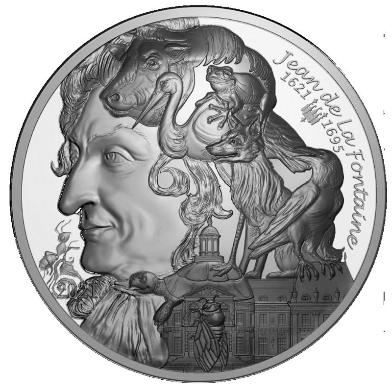 Het portret van Jean de La Fontaine, de beroemdste Franse fabeldichter, is afgebeeld in profiel. Op de achtergrond mengen enkele van de dieren uit zijn beroemde fabels zich met zijn haar. De achterkant is gelijk aan de hele "Art of the Pen" serie.