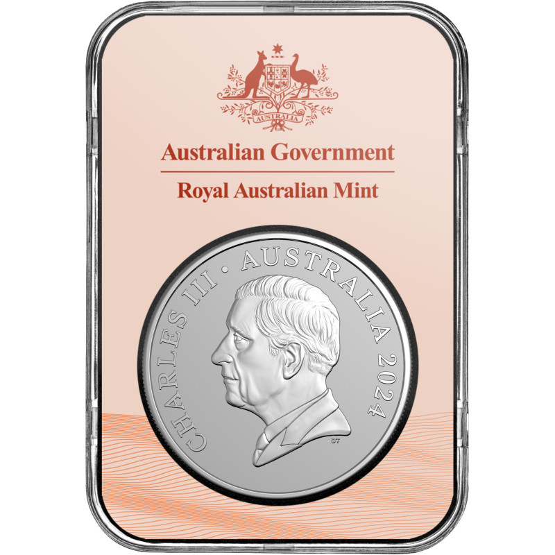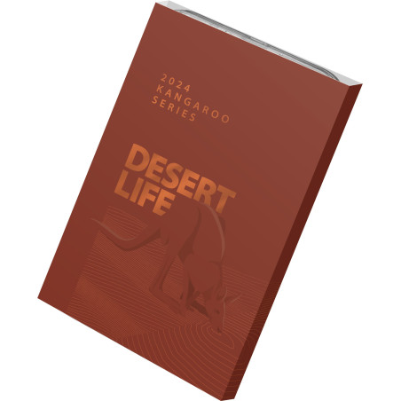 The Royal Australian Mint proudly presents Desert Life, the thirty-first release in its Kangaroo Series, celebrating the iconic Red Kangaroo and its home in Australia’s arid red centre. The reverse design depicts a kangaroo taking a refreshing drink at a desert waterhole. The unique polish and frost finishes of this 2024 $1 Silver Frosted Uncirculated Coin create a striking contrast to the other proof coins in this 2024 release. Desert life is harsh and unforgiving, yet the Red Kangaroo has adapted to these surrounding and can go for long periods without water. But when water is found, this desert dweller enjoys a long cooling drink. This stunning and limited mintage coin is truly as precious and rare as a drink of water in the desert