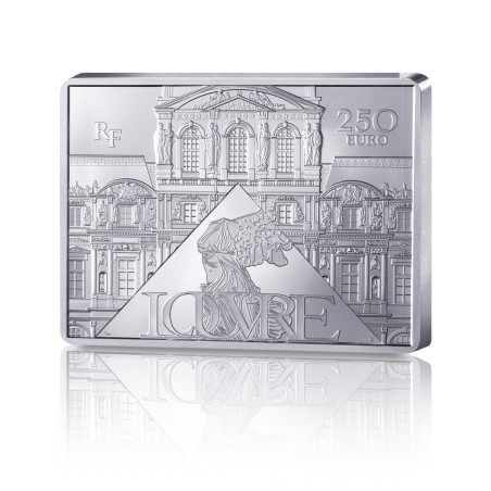 De keerzijde, die gemeenschappelijk is voor de collectie, toont het Louvre-gebouw gezien vanaf de binnenplaats. Op de voorgrond staat de beroemde piramide van het Louvre, waardoorheen we een iconisch kunstwerk kunnen zien: de Gevleugelde Overwinning van Samothraki. De naam van het museum staat onderaan de piramide, samen met de merktekens aan de uiteinden. Het acroniem "RF" en de nominale waarde staan boven de daken van het Palais du Louvre.