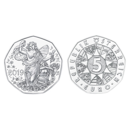 De nieuwjaarsmunt 2019 van de Oostenrijkse Munt is gewijd aan het concept van Lebensfreude. Dit concept, het best vertaald met de Franse term joie de vivre, wordt op de munt gesymboliseerd in de vorm van een danseres die vol levensvreugde is. De afbeelding is ontleend aan een schilderij van Franz Dobiaschofsky (1818-67) dat te vinden is op de hoofdtrap van de wereldberoemde Staatsopera in Wenen, die in 2018 150 jaar bestaat. Er zijn maar weinig gebouwen die de mensen erin met zoveel vreugde vervullen als een operagebouw. Een goed voorbeeld is de danseres die van vreugde lijkt te vliegen terwijl ze op haar vlindervleugels door de onvergelijkbare kracht van muziek naar de toekomst wordt getransporteerd.