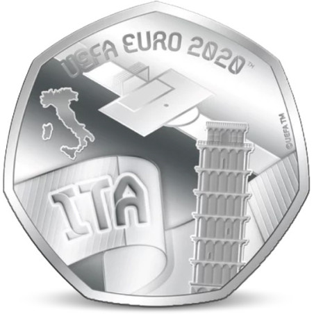 Dit is een van de officiële 20 pence Herdenkingsmunten die ter ere van het EK 2020 zijn geslagen. Er is een officiële Herdenkingsmunt vervaardigd voor elk land dat deelneemt aan het kampioenschap. Deze unieke EK-munten zijn stuk voor stuk zwaar verzilverd met puur (99,99%) zilver. De munten, met de opschrift UEFA EURO 2020™, zijn geslagen voordat het EK noodgedwongen naar 2021 werd verplaatst. Dit maakt de munten zeer gewild onder zowel voetbalfans als verzamelaars wereldwijd.