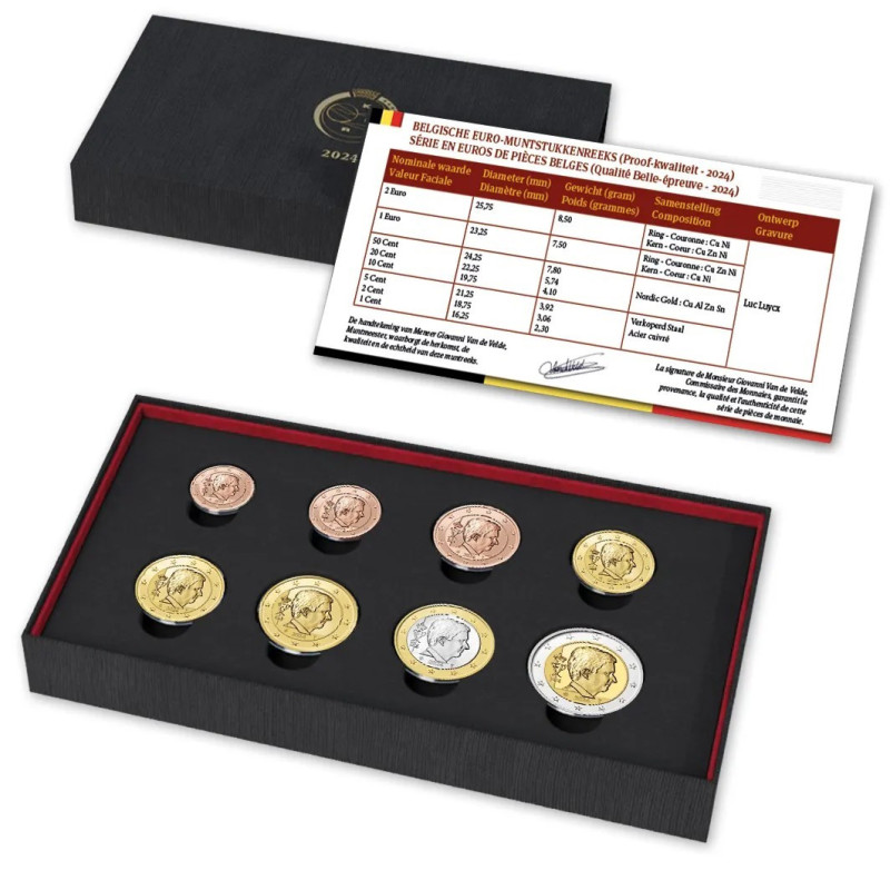 Sinds 2002 geeft de Koninklijke Munt van België de jaarlijkse "Proof Set Belgium" uit, die alle euromunten in Proof-kwaliteit bevat. De acht euromunten worden veilig en stijlvol gepresenteerd in een luxe verzamelaarskoffer, vergezeld van een echtheidscertificaat. Elke munt is ook verpakt in een transparante beschermende capsule.